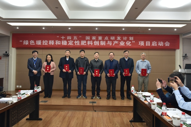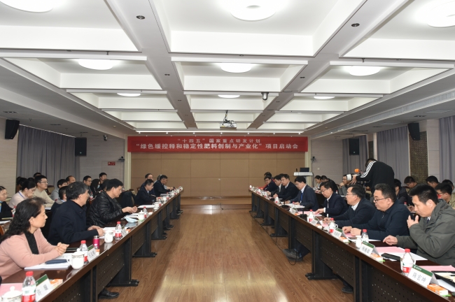 3月4日,“十四五”国家重点研发计划“绿色缓控释和稳定性肥料创制与产业化”项目启动会在山东农业大学召开。农业农村部科技发展中心、山东省科技厅等单位领导,中国工程院院士、中国农科院农业资源与农业区划研究所周卫研究员等7位项目咨询专家组成员出席会议。山东农业大学党委副书记、校长冷畅俭与会致辞并为专家组成员颁发聘书。党委常委、副校长李向东主持启动仪式。