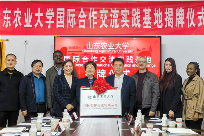 3月26日,山东农业大学国际合作交流实践基地揭牌仪式在泰安金兰奶牛养殖有限公司举行,党委常委、副校长李向东与泰安市科技局局长柳桂敏共同为基地揭牌。
