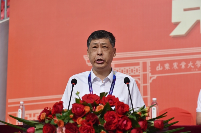 冷畅俭代表山东农业大学向大赛表示热烈祝贺,向与会的领导、嘉宾、领队、教练员和运动员表示诚挚欢迎。他介绍了学校的办学特色、亮点,介绍了学校冲击国家一流学科、创办一流农业大学的信心决心,期盼高校同仁一如既往地支持山东农业大学的发展建设。