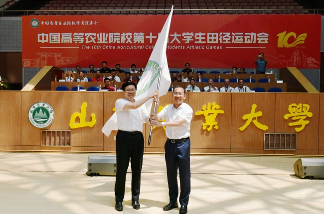 6月24日,历时3天半的中国高等农业院校第十届大学生田径运动会在山东农业大学泮河校区落下帷幕。山东农业大学党委副书记、校长冷畅俭,西北农林科技大学党委副书记闫祖书,沈阳农业大学党委常委、副校长吴东立,中国高等农业院校体育理事会常务副理事长束景丹,中国高等农业院校西南区体育理事会理事长刘仁健,中国高等农业院校东北区体育理事会理事长张亮,中国高等农业院校西北区体育理事会理事长任启俊,中国高等农业院校体育理事会副秘书长亚力昆·赛依都,本届运动会赛事总管朱宁刚出席闭幕式并为获奖运动员颁奖。山东农业大学副校长林海主持闭幕式。