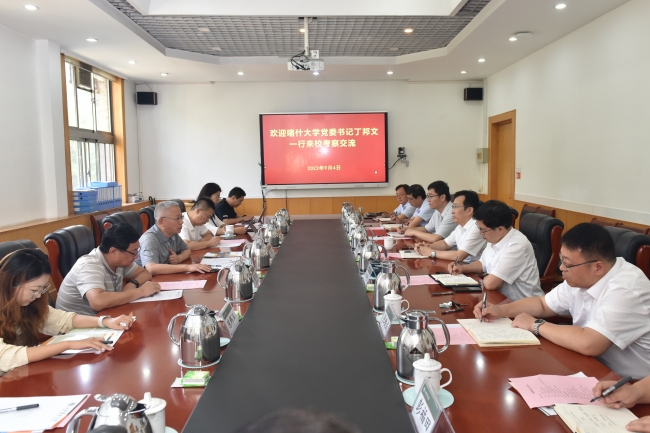 9月4日,喀什大学党委书记丁邦文一行来校访问。山东农业大学党委书记徐剑波,党委副书记、校长冷畅俭会见客人。喀什大学副校长罗浩波,山东农业大学党委常委、副校长王勇参加活动。