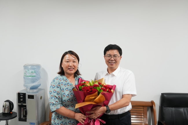 9月10日,教师节当天,学校党委副书记、校长冷畅俭到小麦育种全国重点实验室看望生科学院教授张宪省和农学院教授刘风珍,向他们送上鲜花和节日祝福,感谢他们为学校事业发展作出的贡献,通过他们向辛勤耕耘的全校教职员工致以节日问候。