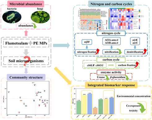 近日,资源与环境学院朱鲁生教授团队在《Journal of Hazardous Materials》发表了题为“Effect of flumetsulam alone and coexistence with polyethylene microplastics on soil microbial carbon and nitrogen cycles: Elucidation of bacterial community structure, functional gene expression, and enzyme activity”的研究论文。张静文博士为该论文的第一作者,朱鲁生教授为该论文的通讯作者。