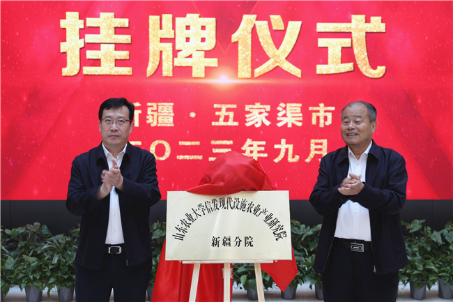 在五家渠市,徐剑波与信发集团董事局主席张学信一起,为山东农业大学信发现代设施农业产业研究院新疆分院揭牌,实地考察集团正在当地建设的现代设施农业项目,分析项目前景,谋划发展思路。徐剑波要求学校专家团队紧密对接当地现代农业发展实际,抢抓机遇,整合资源,巩固优势,做强力量,与企业凝聚攻坚合力,在新疆这片广阔土地上写好山东农大人科教兴农的新篇章。