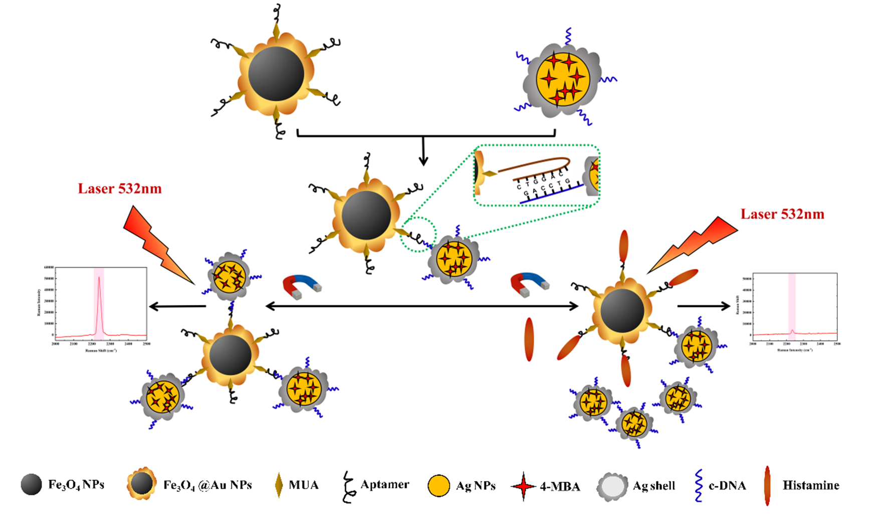 近日,食品科学与工程学院食品安全与质量控制团队在《Food Science and Human Wellness》发表了题为“A core-satellite self-assembled SERS aptasensor containing a “biological-silent region” Raman tag for the accurate and ultrasensitive detection of histamine”的研究论文,博士生陈晨和硕士生张瀛方为共同第一作者,徐志祥教授和新西兰Geoffrey I.N. Waterhouse教授为本文通讯作者,山东农业大学为论文第一完成单位。