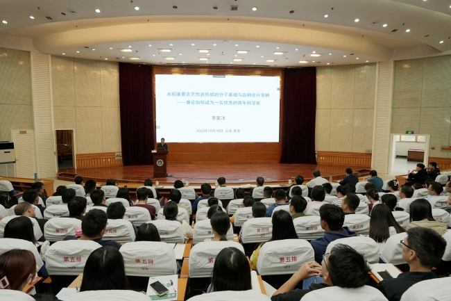 10月18日-19日,崖州湾国家实验室主任,中国科学院遗传与发育生物学研究所研究员,中国科学院院士李家洋莅临山东农业大学指导交流,并作题为《水稻重要农艺性状形成的分子基础与品种设计育种——兼论如何成为一名优秀的青年科学家》的学术报告。学校党委副书记、校长冷畅俭,党委常委、副校长王勇出席报告会,小麦育种全国重点实验室主任张宪省主持大会。