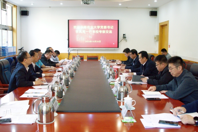10月26日,华南农业大学党委书记李凤亮一行来校考察交流,双方就党的建设、新农科建设、青年干部培养和人才队伍建设等工作进行深入交流,山东农业大学党委书记徐剑波会见客人并参加座谈交流。