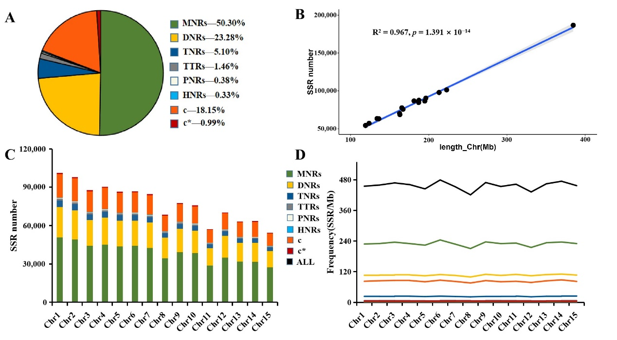 CRISPR/Cas9是一种高效的基因组编辑工具,茶树基因组中编辑位点的鉴定及潜在影响因素尚未得到研究。在本研究中,利用生物信息学方法鉴定shuchazao基因组中包括编辑位点、simple sequence repeats (SSR)、G-四链体、基因密度的特征及其关系。在基因组中共鉴定了248,134,838个潜在的编辑位点,观察到AGG、TGG、CGG、GGG、NGG五种PAM类型,其中66,665,912个被发现是有特异性的,它们存在于基因所有结构元件中。联合分析中在染色体中发现了GC含量、GQ密度、PAM密度高相反基因密度、SSR密度低的特征区域,并发现该区域与次生代谢物和氨基酸生物合成途径相关。所鉴定的编辑位点与影响元件SSR标记为茶树功能研究和分子育种提供了有价值的工具,也给予了其他作物育种参考。