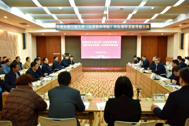 12月13日,齐鲁工业大学(山东省科学院)党委书记吴衍涛一行来校,围绕党建、文化建设、教育教学、科研创新、学科建设等工作进行考察交流,党委书记徐剑波参加座谈会并介绍学校有关情况,党委副书记、校长冷畅俭,副校长林海,党委常委、副校长王勇,齐鲁工业大学(山东省科学院)校长(院长)段培永,党委委员、副校长(副院长)曹茂永、刘玉等参加活动。