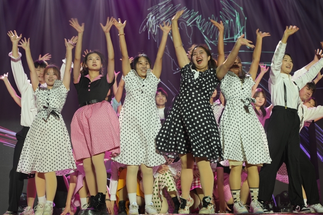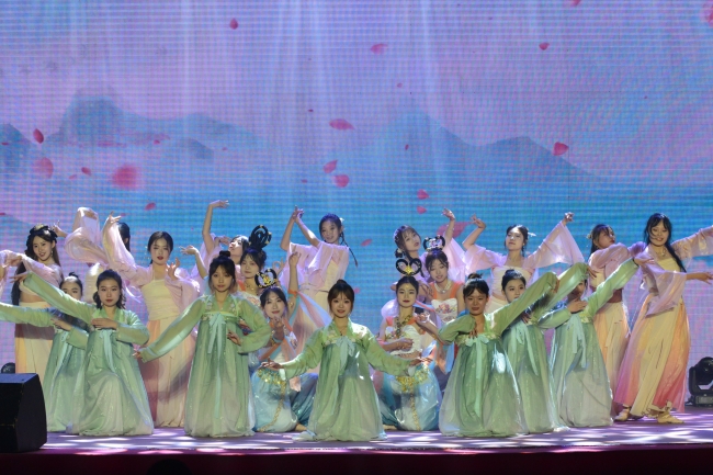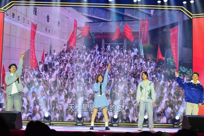 竞技场上的优秀运动员联袂带来的运动风采展示的蓬勃朝气再次点燃全场。原创歌曲《岱下青年》用音符传递出岱下学子努力拼搏、奋勇争先的精神面貌,朗诵《我们的青春》呈现出一代代农大儿女在青年时期志存高远、踔厉奋发的使命担当。晚会在《乘风破浪》歌舞中落下帷幕。