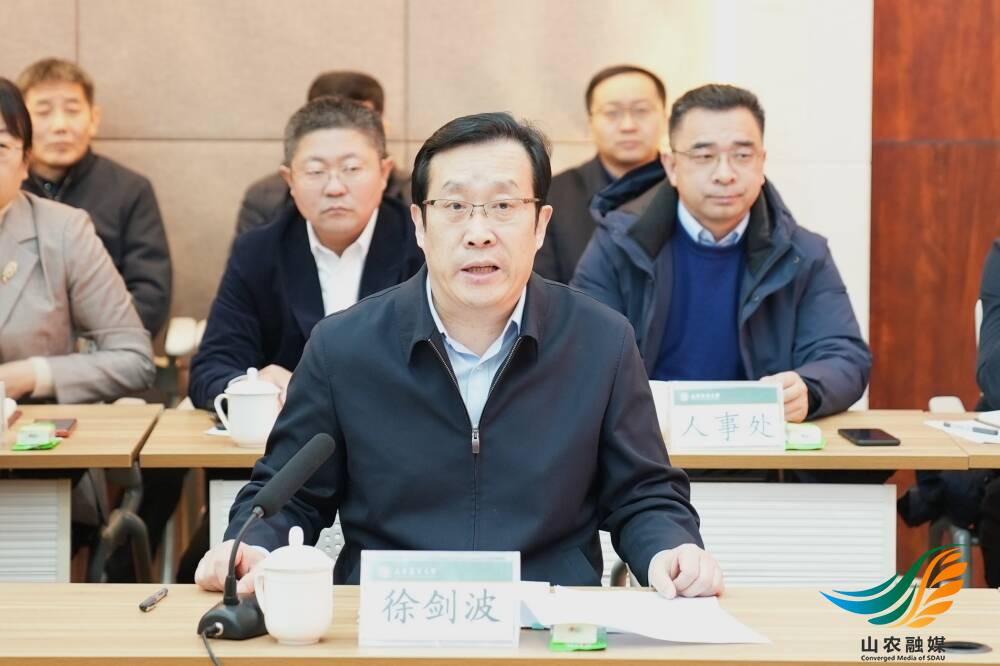 徐剑波对张培峰、杨建全一行的到来表示热烈欢迎。他说,去年11月,省教育厅、省财政厅公布了山东省一流学科建设“811”项目优势学科和潜力学科建设名单。今年年初,学校农业科学学科进入ESI学科排名全球前1‰行列,实现了新年工作“开门红”。徐剑波表示,当前,学校正处于全面建设一流农业大学的关键时期,希望地方政府继续大力支持学校的改革发展建设,帮助学校解决制约发展的瓶颈问题。山东农业大学也将以此为契机,进一步深化改革,加快发展,全力争上国家一流,努力推进一流农业大学建设,为泰安市和泰山区经济社会发展作出新的更大贡献。