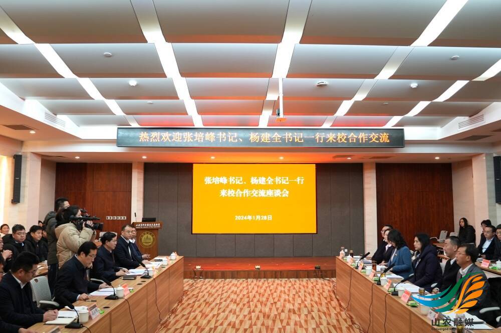 山农融媒1月29日讯 1月28日,泰山区委书记张培峰,泰安市科技局党组书记、一级调研员杨建全一行来校调研交流。学校党委书记徐剑波会见客人并主持座谈会,校地双方就充分发挥资源优势,深化科技领域创新发展、加强产学研用等方面深入交流,共话校地合作新愿景。学校党委副书记、校长冷畅俭,党委常委、副校长高立明,党委常委、副校长单国杰,党委常委、副校长王勇参加活动。