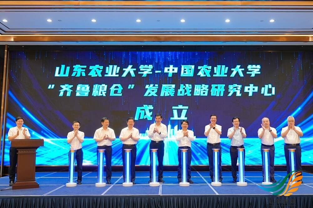 山农融媒7月25日讯 7月24日,山东农业大学与中国农业大学举行作物学学科与更高水平“齐鲁粮仓”建设研讨会,签署对口帮扶协议,揭牌启动山东农业大学-中国农业大学“齐鲁粮仓”发展战略研究中心。山东省政府副省长邓云锋出席会议并讲话,第十四届全国人大常委、中国农业大学校长、中国工程院院士孙其信,山东农业大学党委书记徐剑波出席会议并致辞。学校党委副书记、校长冷畅俭主持会议。