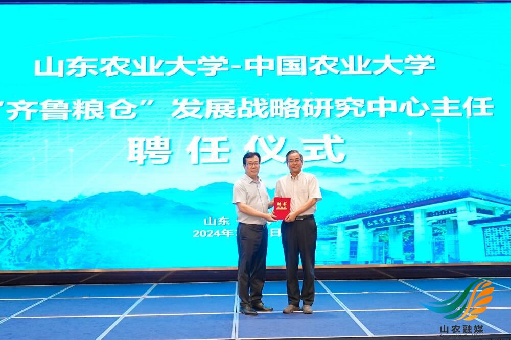 会上,徐剑波为中国农业大学教授、国家农业科技战略研究院院长高旺盛颁发山东农业大学-中国农业大学“齐鲁粮仓”发展战略研究中心主任聘书。高旺盛教授作发展战略主旨报告,从宏观农业与发展战略规划、农业科技政策等方面出发,深入分析作物学学科发展趋势和“齐鲁粮仓”建设的战略意义并提出一系列具有前瞻性和可操作性的建议。