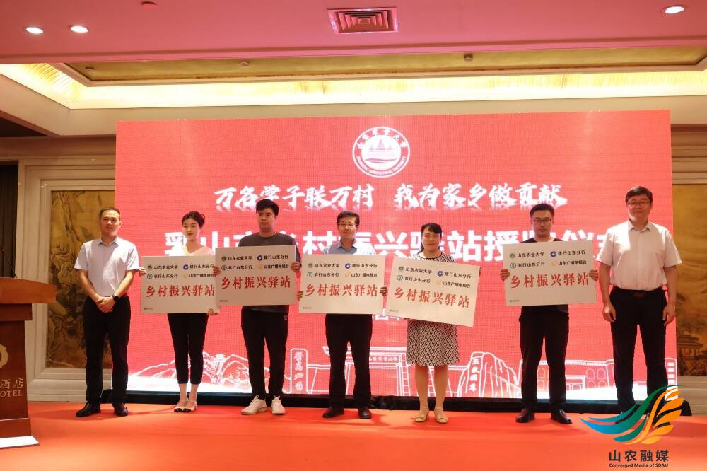 山农融媒8月3日讯 近日,学校在威海市乳山市开展乡村振兴驿站挂牌建设工作。学校党委常委、副校长王勇与乳山市副市长李庆龙共同为南黄镇冷家村等11个乡村振兴驿站授牌。