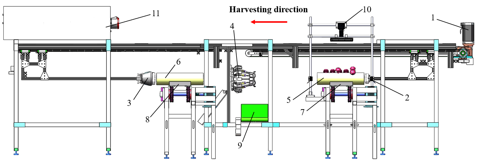 针对以上技术难题,山东农业大学苑进教授团队首创了香菇菌棒选择性采收新模式,并创新设计了一种新型香菇菌棒选择性采收机,实现低损伤、高效采摘。基于提出的ReYOLO-MSM菌棒评估方法获得香菇数量、香菇大小和圆度、合格香菇占比等信息,从而评估出菌棒的生长状态。该研究构建了香菇菌棒选择性采收机,并在香菇生产工厂中进行了采摘试验。试验结果验证了新型机械化采摘模式和香菇菌棒选择性采收机,可提高采摘效率,具有很强的有效性和可行性,研究团队以此为基础设计了适用于香菇生产线的采收装备。该技术有望为提高香菇采摘环节的工厂化生产提供重要核心装备,为打造食用菌智慧工厂化生产和绿色发展提供了山东农业大学方案,对国际香菇产业发展方向产生重要引领性作用。