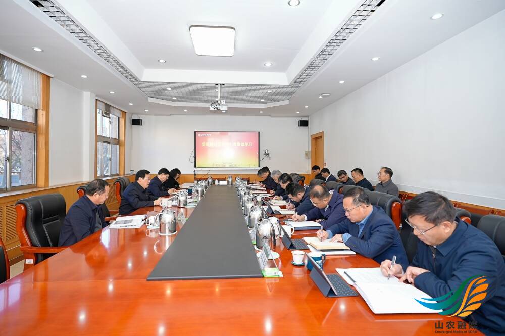 山农融媒1月9日讯 1月9日,学校党委理论学习中心组开展2024年度民主生活会前专题学习会,深入学习贯彻党的二十大和党的二十届二中、三中全会精神,学习领会习近平总书记关于党的建设的重要思想、关于党的自我革命的重要思想以及关于全面加强党的纪律建设的重要论述,学习党章、《中国共产党纪律处分条例》等,重点学习习近平总书记在中央政治局民主生活会上的重要讲话精神,安排部署贯彻落实工作。党委书记徐剑波主持会议并讲话,强调要深入学习领会习近平总书记重要讲话精神,结合自身思想和工作实际,自觉对标对表,把思想和行动统一到习近平总书记重要讲话精神上来,提高政治站位,深化思想认识,为开好年度民主生活会打牢思想基础。