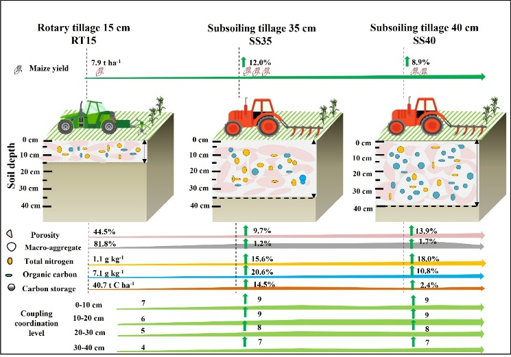 深松是改善土壤结构、增加土壤养分含量和促进作物生长的保护性耕作措施。然而,应用耦合协调分析(CCA)模型来揭示长期深松如何影响土壤多指标与作物生产之间的耦合协调关系尚不清楚。