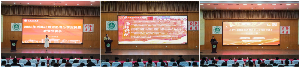 4月2日和4月11日,学校分别在泮河校区报告厅举办西部计划志愿者分享交流暨政策宣讲会。活动中,校团委工作人员详细解读招募条件、服务内容及政策保障,服务新疆、陕西等地的优秀志愿者通过生动的故事与真实的思考,分享扎根基层的感悟与成长。互动环节中,同学们就服务地选择、职业规划等问题积极提问,现场气氛热烈。活动有效激发了青年学子投身西部的热情,为后续招募工作奠定基础。