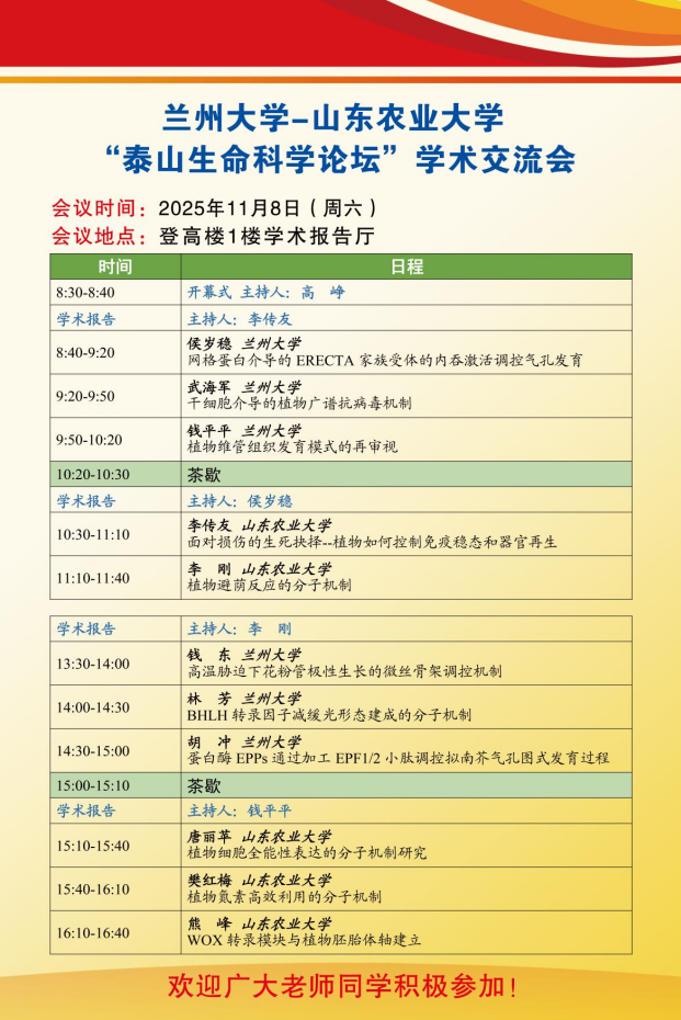 兰州大学-山东农业大学“泰山生命科学论坛”学术交流会